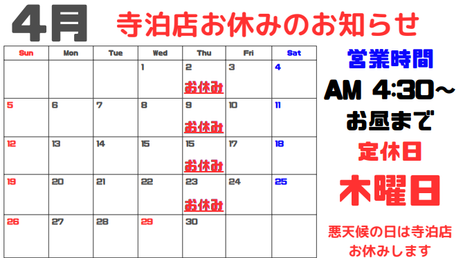 [4月の営業時間]