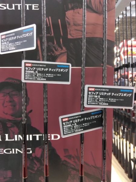 シマノのブースではイカ先生が新しいセフィアリミテッドTEの説明を熱弁